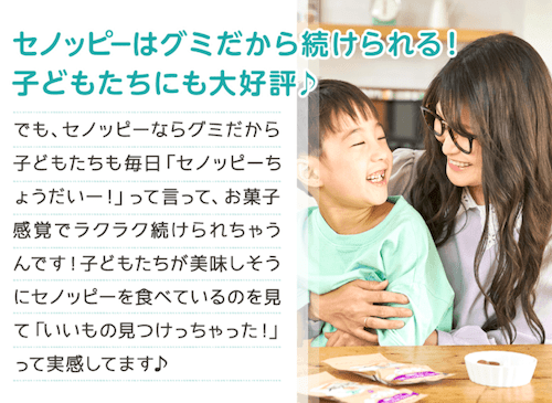 食事には十分気をつけてきました。それでもやっぱり完璧な栄養は取れないのでセノッピーを与えています。カルシウムだけでなく、アミノ酸や乳酸菌などたくさんの栄養素がグミで取れるのが嬉しいですね。