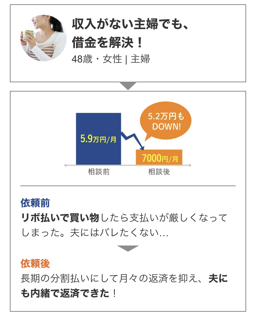 | 毎月の返済が厳しい… 家族や会社にバレないか心配… 業者からの督促の電話や手紙が怖い… |