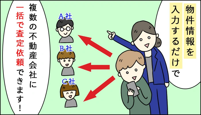 そのエリアに合った不動産会社へ物件情報を共有し、査定金額を調べてくれるというサービス!