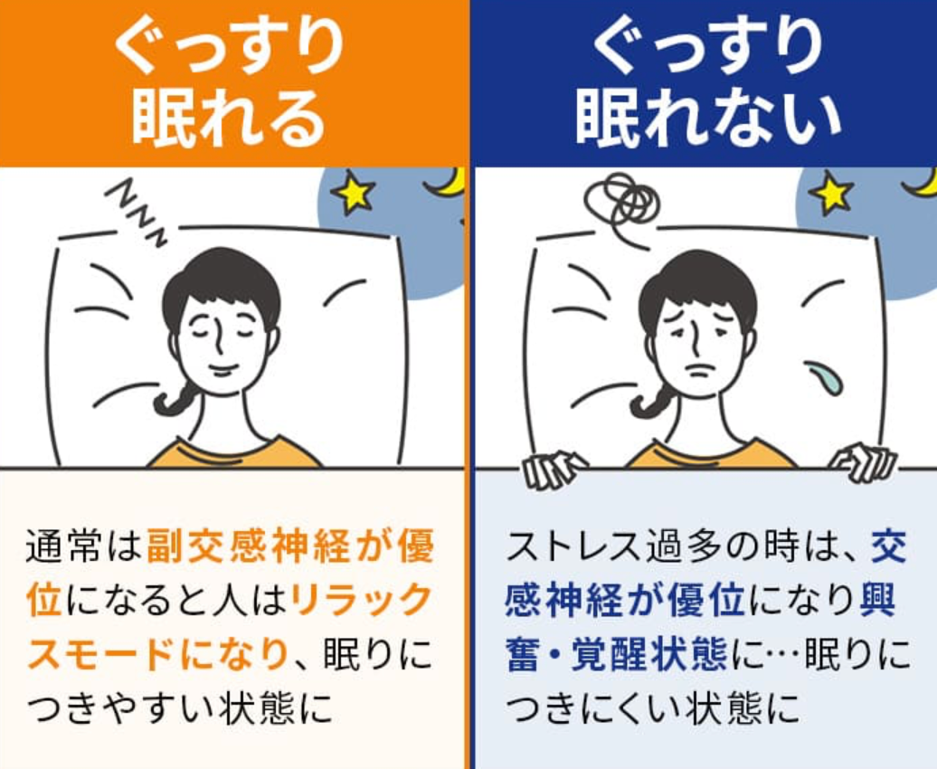 睡眠時に優位になる「副交感神経」があり、
