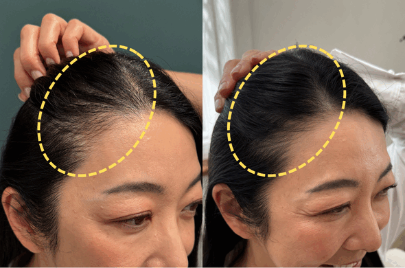 分け目の薄さを隠すようにいつも髪をまとめてました💦でも最近は下ろしても平気。ふわっと立ち上がるし髪もツヤツヤで、自分の髪を触るのがちょっと楽しみになってます😆
